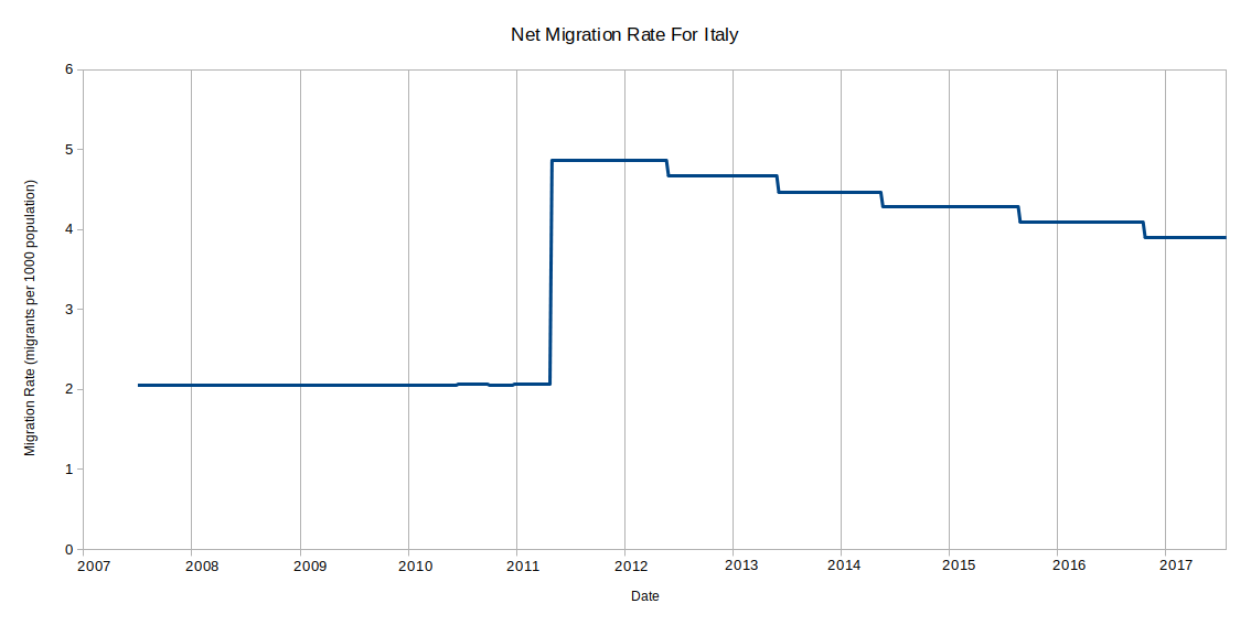 However, other data sources seem to suggest the number of people involved in specific large immigration events are not significant in the overall measure of net migration in Italy, despite being significant in their own right.